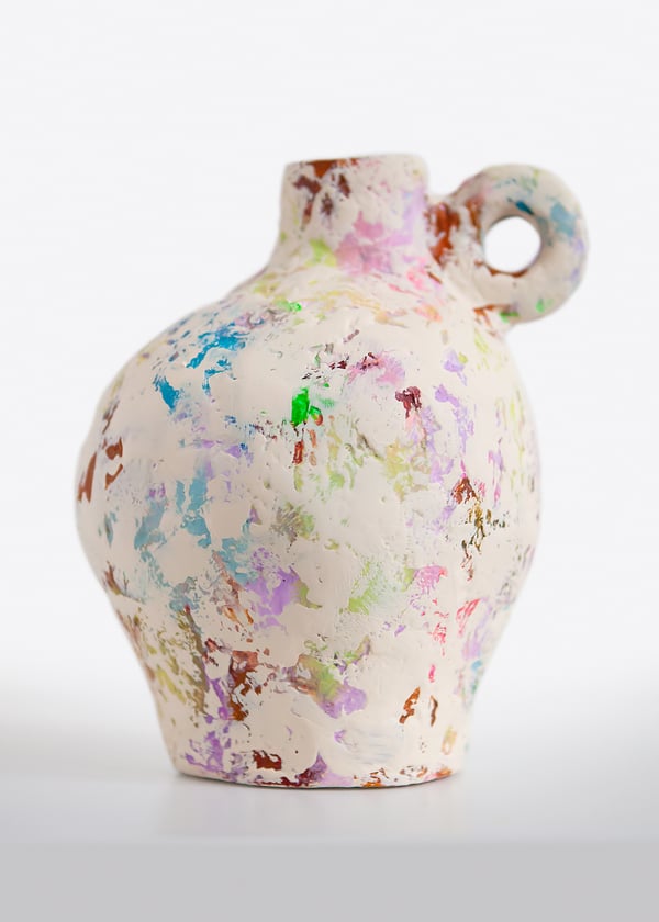 Made one piece at a time turning "trash into treasure" - Jacqueline de la Fuente's work is a new twist to ceramics. A perfect ornamental piece on its own or with dried flowers.