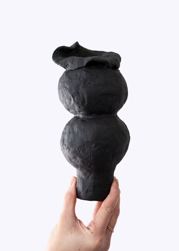 Taking into consideration everyday waste and circular design, DE LA JARDIN hand sculpts each vessel using materials such as egg cartons, mail and cardboard packaging, all sourced locally.